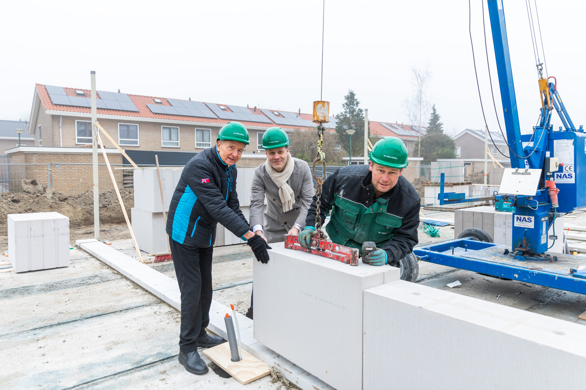 Een toekomstige bewoner plaatste op 21 januari een woonblok op de begane grond van een nieuwe woning in aanbouw. Samen met Danny Visser, directeur-bestuurder van Woongroen. Daarmee gaven zij het officiële startsein voor de bouw van de 1e 40 nieuwe in de buurt Griffensteijn in Zeist.