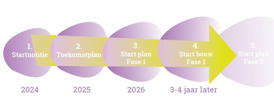 Vanaf de 1e sloop tot en met de oplevering van de laatste nieuwbouwblokken zijn we naar verwachting 10 jaar bezig. Dat komt omdat we in fases moeten bouwen.